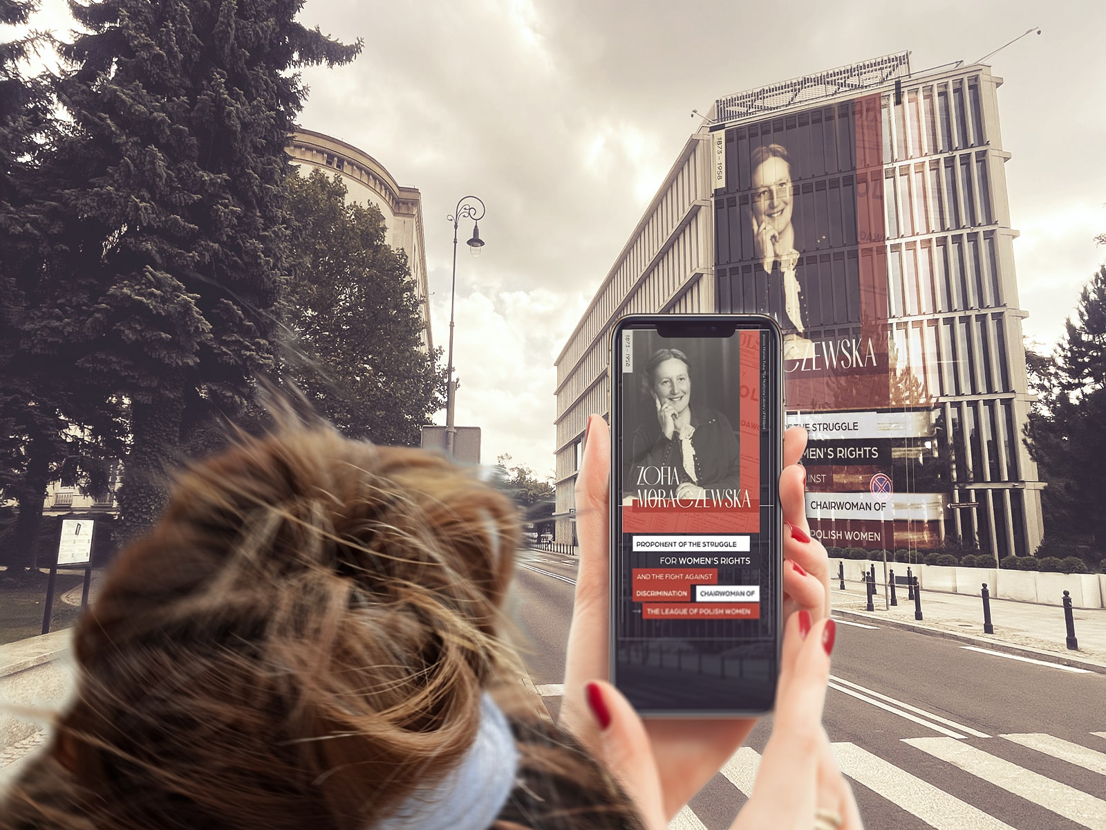 We developed a digital educational XR poster, exploring the life of Zofia Moraczewska, Poland’s first female Member of Parliament. The poster was installed digitally on the Parliament Archives building in Warsaw and is available using mobile phones and XR goggles. Additionally, the poster includes a news feed showing current legislative works in the Polish Parliament. Developed for the Office of the Polish Parliament.